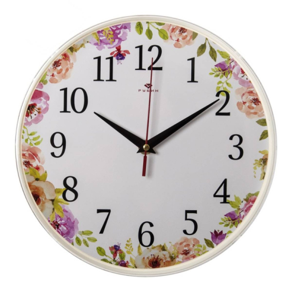 Часы 2524-147 корпус белый "Акварельные цветы"