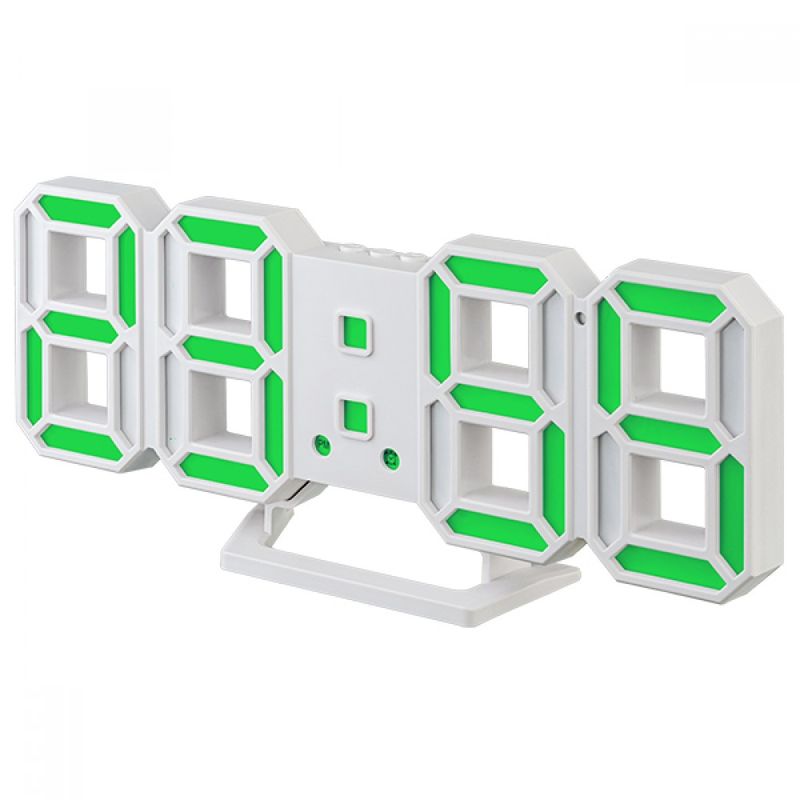 Perfeo LED часы-будильник "LUMINOUS 2", белый корпус / зелёная подсветка (PF-6111)