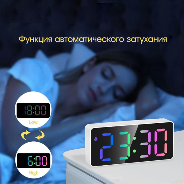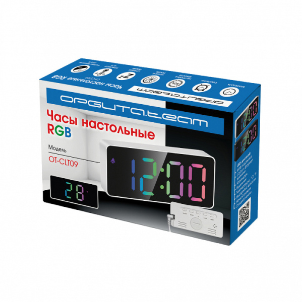 Орбита OT-CLT09 Белые часы настольные RGB (будильник, температура, дата)