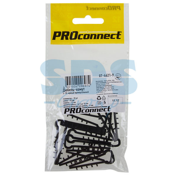 Дюбель-хомут 5-10 черный, прямоугольный (10 шт. ) PROCONNECT 07-4621-9