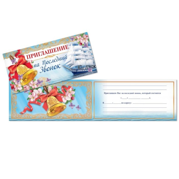 Приглашение на последний звонок,колокольчик 13x6,5 см 2906334