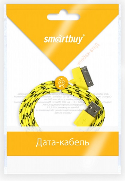 Дата-кабель Smartbuy USB - 30-pin для Apple, нейлон, длина 1,2 м, желтый (iK-412n yellow)