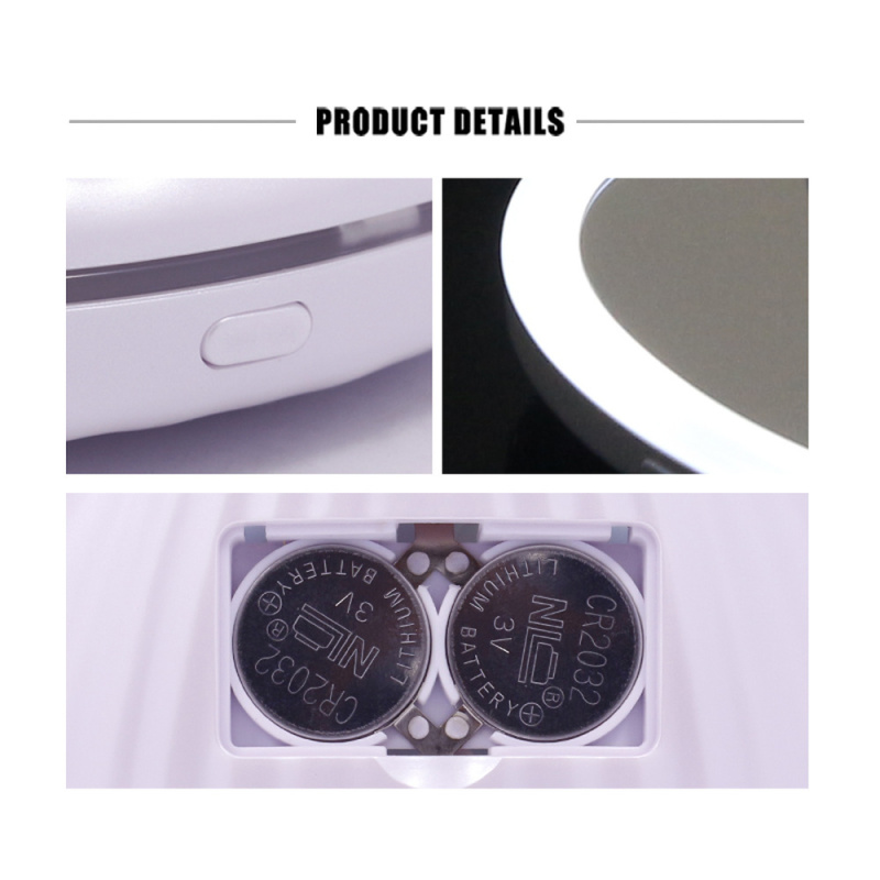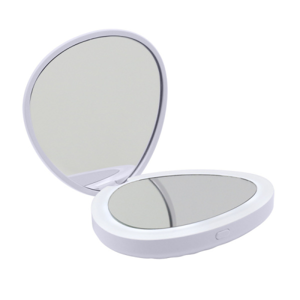 Зеркало косметическое двойное складное со светодиодной подсветкой. Может использоваться в качестве карманного зеркала и как компактный вариант дорожного зеркала. Зеркало имеет малый вес и габариты , пластиковый корпус покрыт белым перламутром. Его эргономичный корпус в виде морской раковины легко помещается в женскую ладонь. С его помощью можно легко сделать макияж даже в условиях малой освещенности. В комплекте два высококачественных зеркала (7 см х 9 см) – обычное и с увеличением 5Х, что позволяет делать сложный макияж и облегчает проведение косметических процедур для людей с ослабленным зрением. Максимальный угол между 2-мя зеркалами в рабочем положении составляет 100 градусов. Подсветка из 11-ти встроенных светодиодов дневного света -