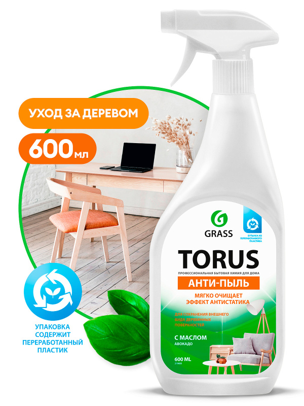 Полироль для мебели от компании GRASS (ГРАСС) Torus 600 мл. Средство для мебели предназначено для восстановления и сохранения естественного вида деревянных поверхностей. Для уборки пыли, разводов, пятен, обладает антистатическим эффектом. Благодаря маслу авокадо защищает мебель и придает блеск. Позволяет улучшить внешний вид, скрывает легкие повреждения.