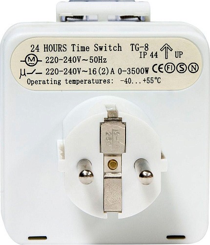 Розетка  (суточная механическая), FERON TM31, IP44, 230V, 3500W/16А цвет белый, 90*99*79мм