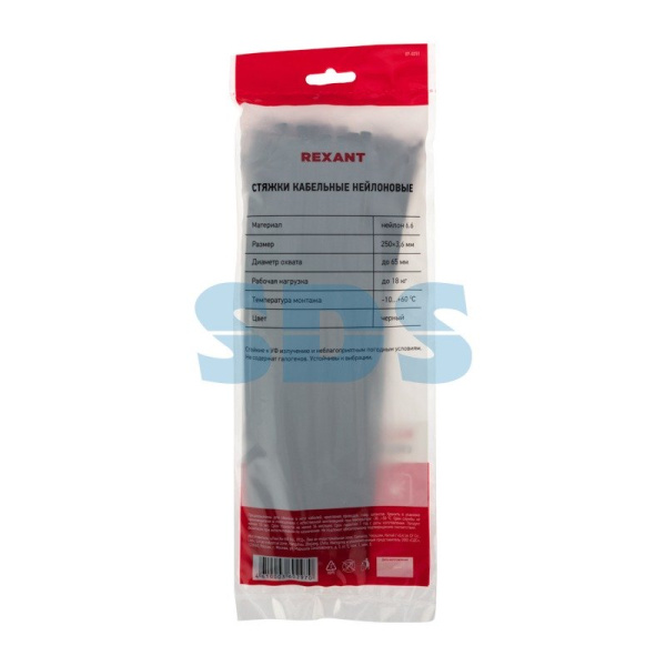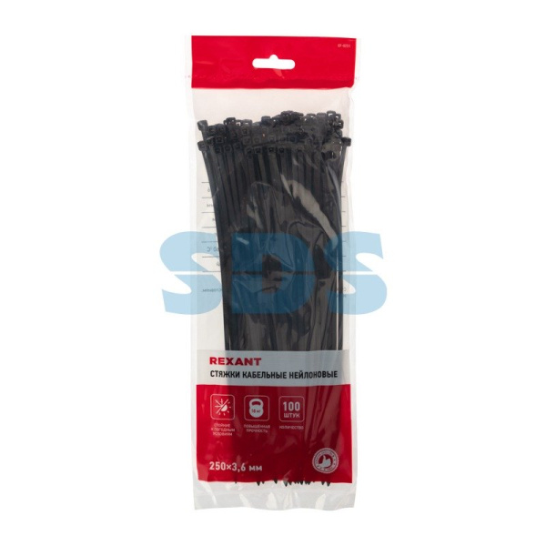 Стяжкa нейлоновая 250 x 3,6 мм, черная (упак. 100 шт) REXANT