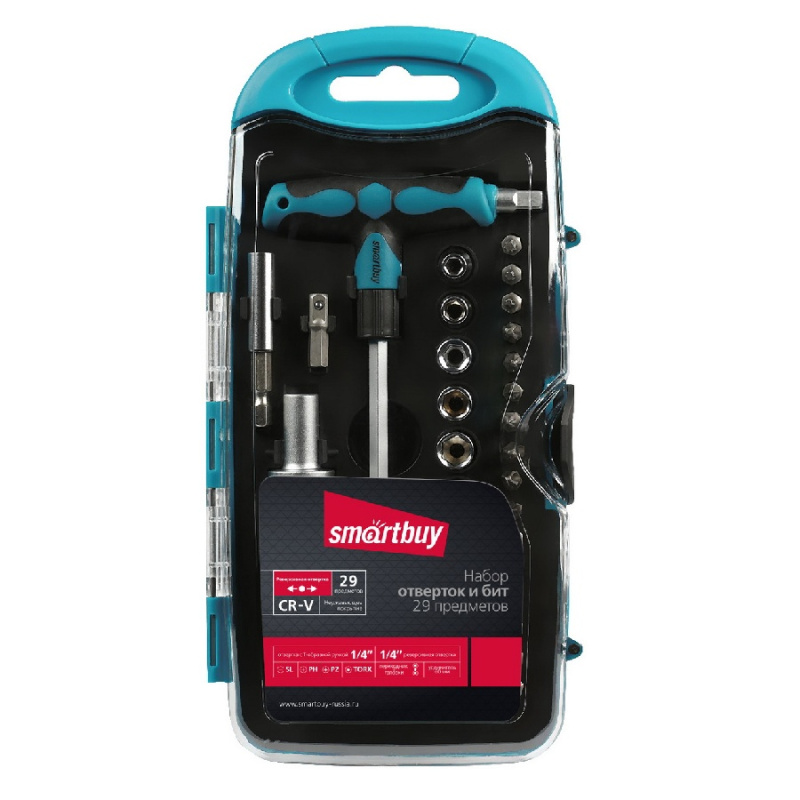 Отвертки с набором бит (насадок) 29 предметов, 2 отвертки, 16 бит, 9 головок. CR-V Smartbuy Tools