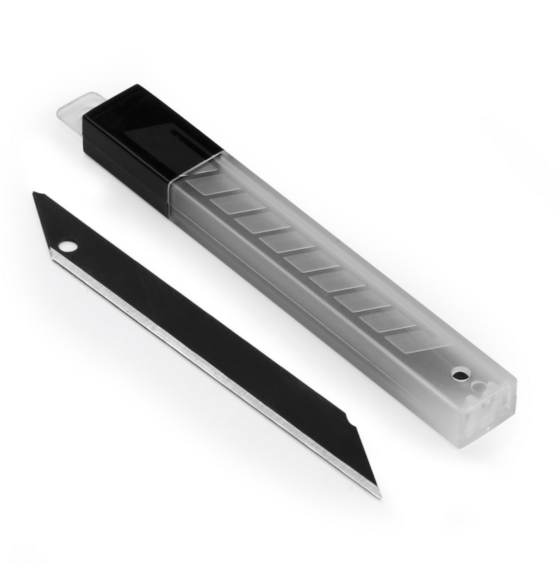 Лезвия предназначены для разрезания различных строительных материалов (пластмасса, аквапанель, гофрокартон, обои, различные виды пленки и стретча, пенополистирол и т.д.), электрики. Каждое лезвие имеет засечки для надлома затупившегося сегмента. Набор включает в себя 10 сегментированных лезвий для ножей в контейнере. Нерж.инструментальная сталь 45'.