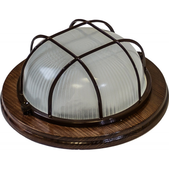Светильник серии "Кантри", в дизайне которой применено натуральное дерево. Некоторые модели дополнительно защищены деревянной решеткой. Диапазон рабочих температур: от +1°С до +130°С. Материал рассеивателя: селикатное стекло. Материал корпуса: сталь, дерево (орех). Источник света: лампа с цоколем Е27. Габариты: 220х220х92 мм. Степень защиты от окружающей среды: IP54. Данные светильники предназначены для освещения административно-бытовых, производственных помещений и мест общественного пользования.
